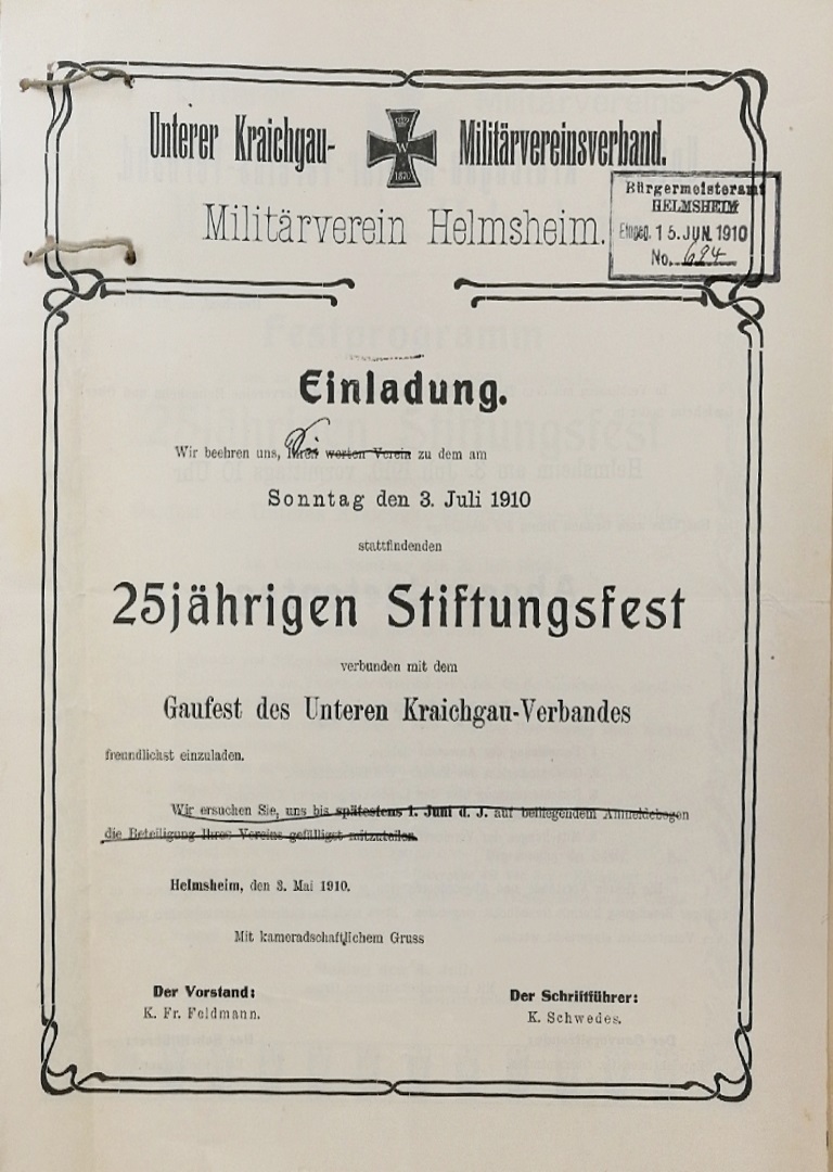 | 16:41, 27. Jul. 2018 | Miv1910.jpg (Datei) | 202 KB | 25 jähriges Stiftungsfest, Militärverein | 1 | |