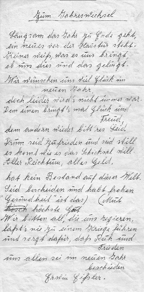 Gedicht Jahreswechsel; Privat aus Nachlass